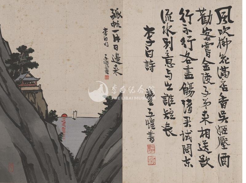现代丰子恺“孤帆一片日边来”书画册页