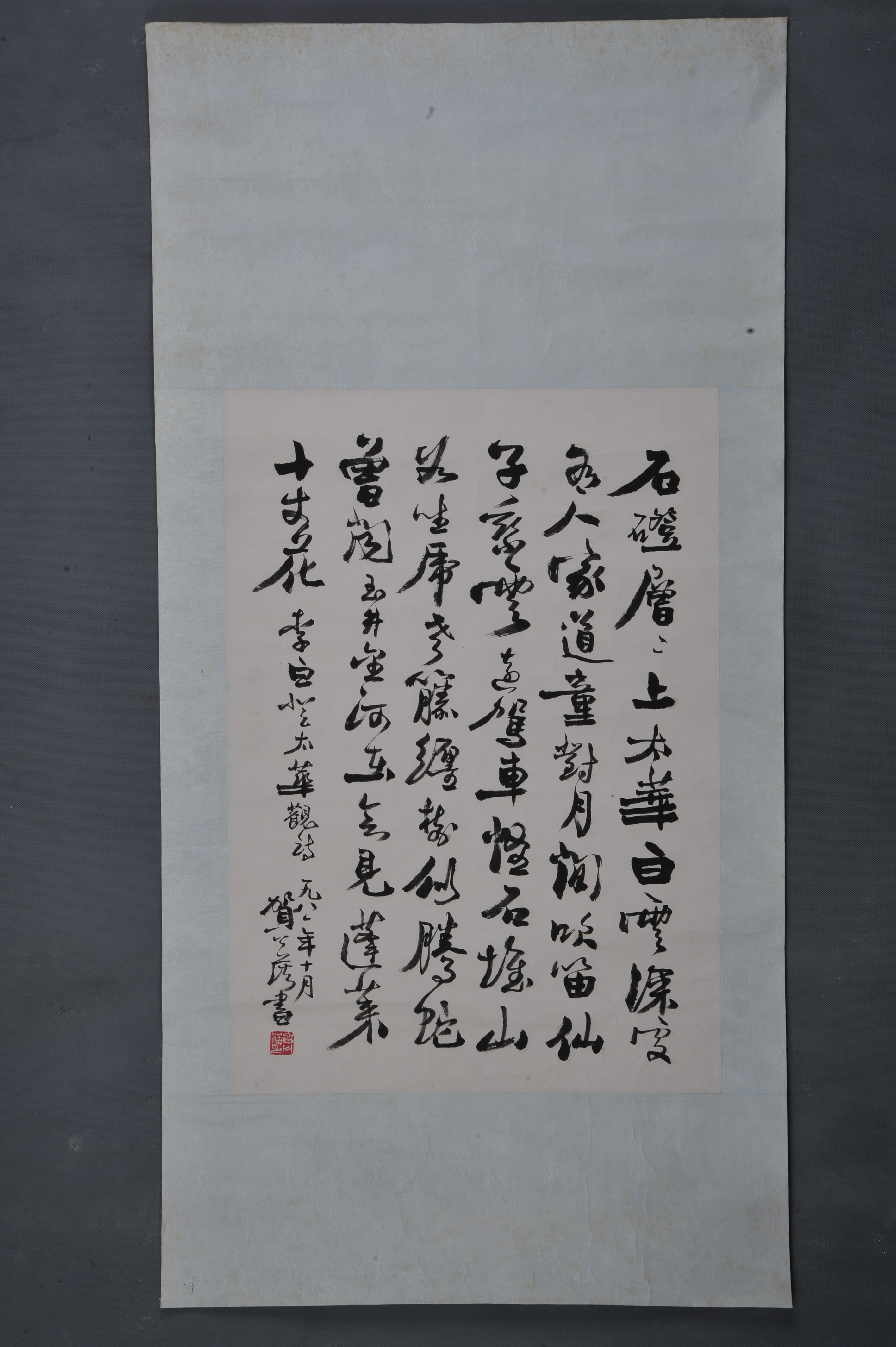 1981年贺公藩行书李白诗《登太华观》镜片